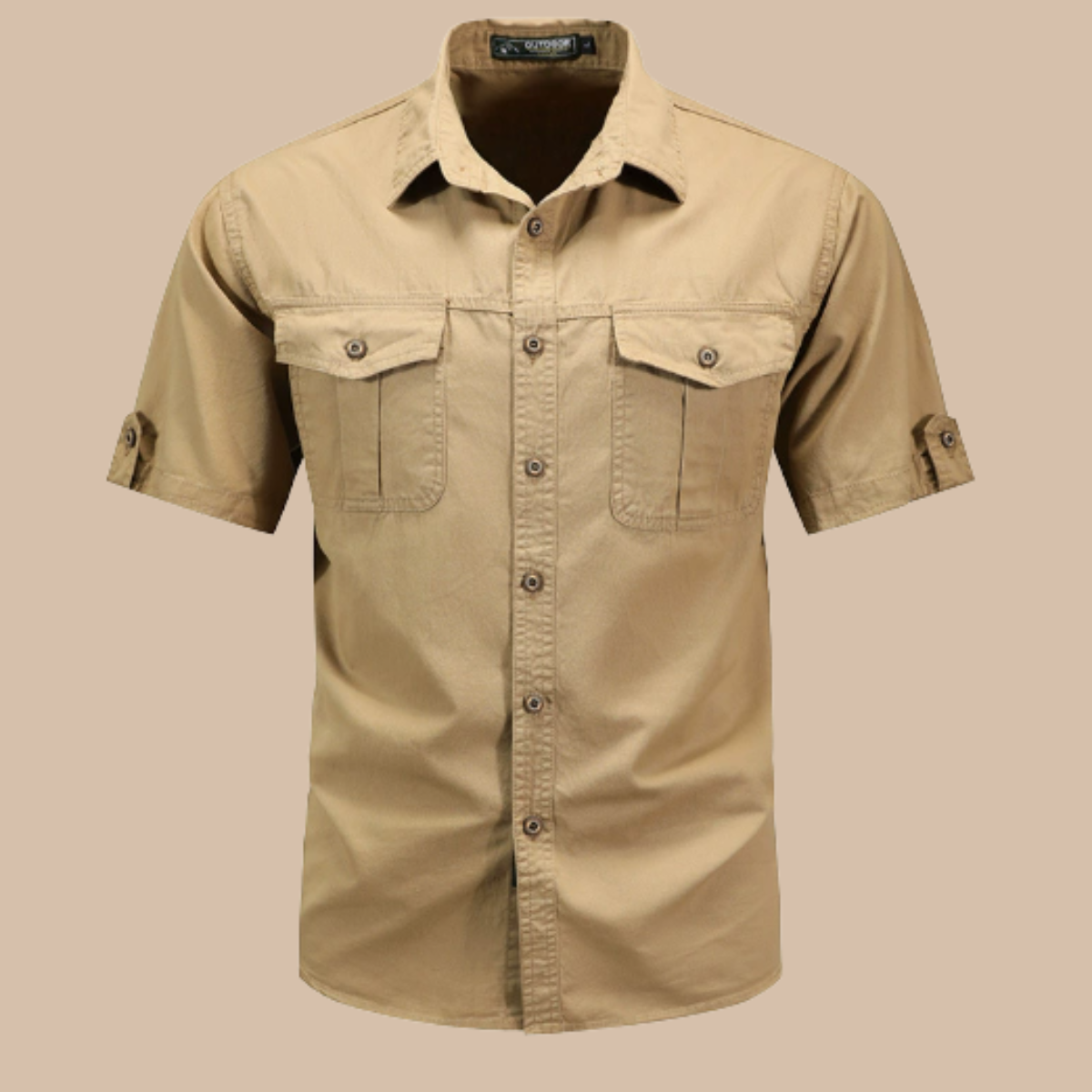 Design: Short sleeve cargo shirt with button front, flap chest pockets, and cuff tabs