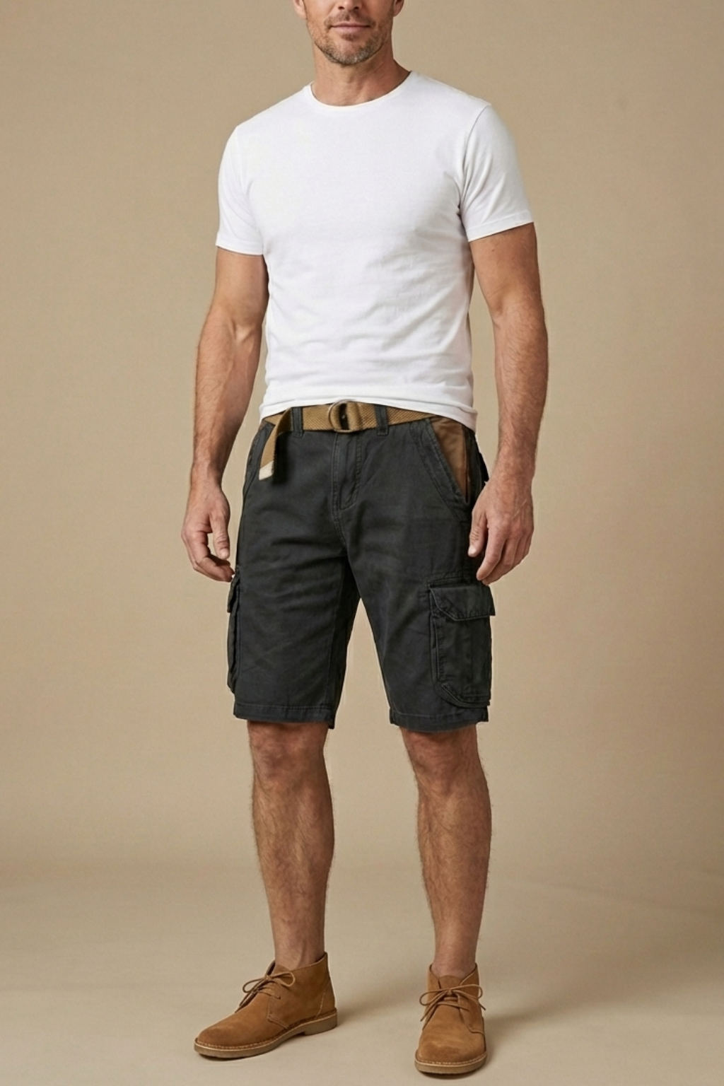 Built for versatility and everyday wear, these cargo shorts deliver a practical yet confident look with a relaxed, masculine edge. The structured cut sits comfortably through the waist and thigh, while multiple pockets add function without sacrificing style. Ideal for weekends, travel, or outdoor days, they strike the right balance between utility and effortless casual dressing.
